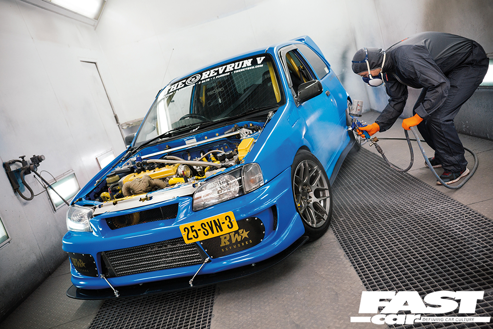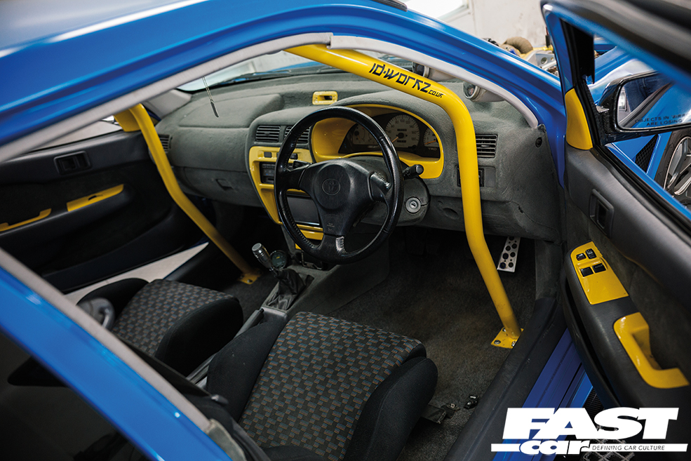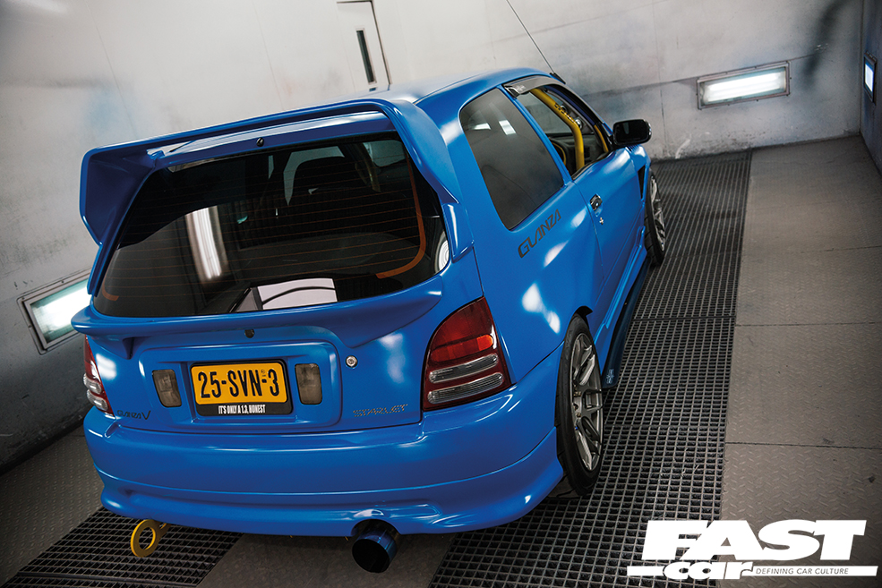 Naturally, no matter how promising a base, there’s always room for improvement, and what you’re seeing here is effectively a sort of Glanza V Plus. Crafted by Erwin van der Vijver, resident of Valkenburg in The Netherlands, it pulls together everything that was right about the late-1990s Toyota line-up, amps up the details and transforms the Glanza V from mildly surprising hot hatch to hell-raising road-and-race hyperhatch. Using the larger engine from the Paseo, then throwing a huge turbo into the mix for good measure, Erwin’s spirited something really quite special into being. “I’ve been into modified cars since I was a kid,” he says. “My father has four modded Porsches, which explains a lot, and when I was old enough to get my first car it all started with a Starlet – a 1997 model which immediately received springs and a set of wheels. After that came a Glanza V, which taught me a lot about car mechanics, although it ended up going into a wall at over 100mph… I’ve also recently bought a late-1980s EP71 Starlet which is getting a lot of mods.” He’s a dyed-in-the-wool Starlet enthusiast then, that much is clear. So how did this Glanza V enter the picture? “Well, I had to get another one,” he grins. “It’s just a little Japanese bomb with simple electronics, it’s basically indestructible. They aren’t cheap these days though… but I bought this one four years ago. And I was busy with modifying it from day one!”