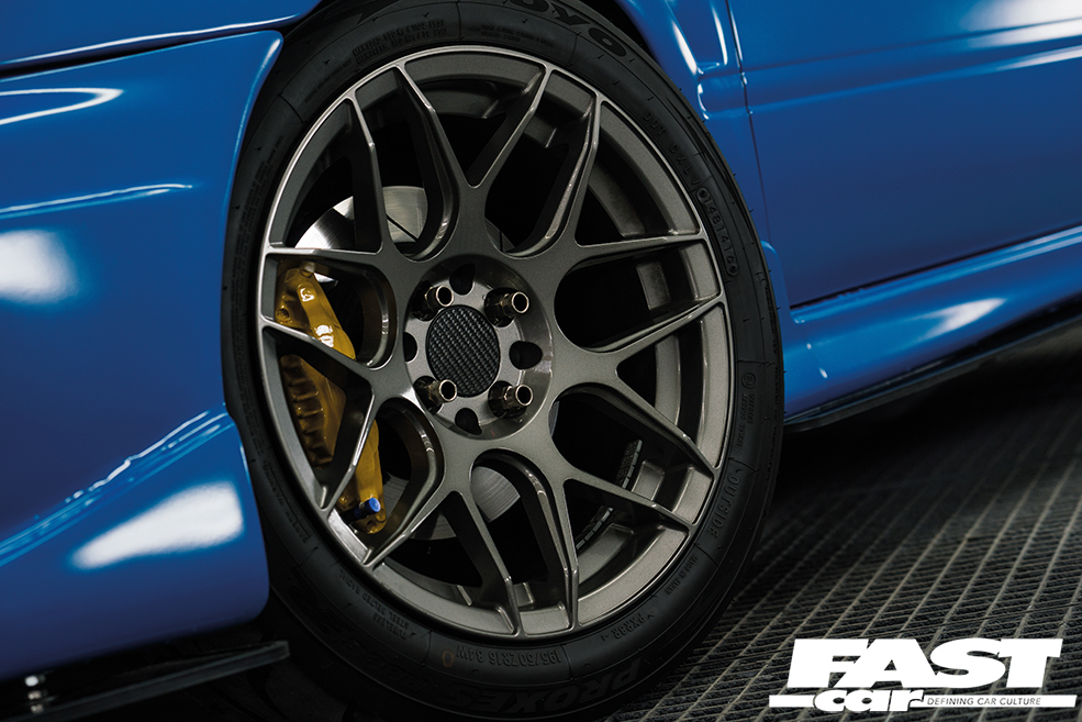 16-inch Japan Racing JR18 wheels, Toyo R888R tyres, ZEP Racing coilovers, ZEP anti-lift kit, ZEP Panhard rod, ZEP big brake kit, ZEP anti-roll bar, Cusco front and rear strut braces, polybushed throughout