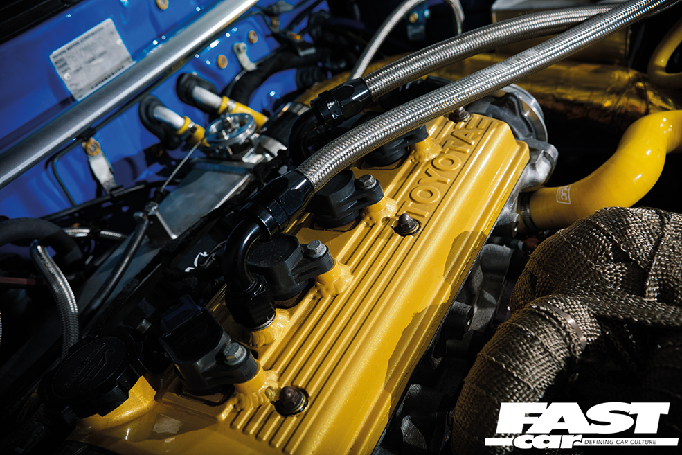 5E-FHTE 1.5-litre 16v DOHC, Precision 5554 anti-surge billet turbo, Turbosmart 38mm external wastegate with screamer pipe, custom 3-inch exhaust system, block bored by Babo Motoren Revisie in The Hague, 75mm Wossner pistons, Scat conrods, ACL bearing set, Speedvision camshafts, Racetech valve springs, ported and polished 4A-GE cylinder head, custom large exhaust ports, custom 3-inch intercooler setup, WEPR inlet, WEPR catch can, ARP 4A-GE head studs and main bolts, Athena head gasket, 1,050cc Injector Dynamics injectors, high-pressure fuel rail with braided lines, 70mm Honda throttle body, K20 coils, GReddy FPR, Haltech Platinum Sports 1000 ECU, lightened flywheel, manual gearbox with LSD, TRD short-shift, Spec Stage 4 springless carbon clutch
