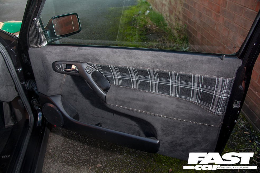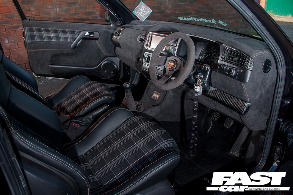 Keen to stick with the GTI theme, Keil really went to town on the interior. “I got hold of some seats from a Corsa VXR and then ordered some Golf Mk7 GTD tartan cloth,” he says. The iconic fabric was then sent to Lawanda at LG Trimming, who used it to cover the centres of the Recaro seats, as well as the rear bench and the door cards. With contrasting copper stitching they look superb – it’s a cracking job.