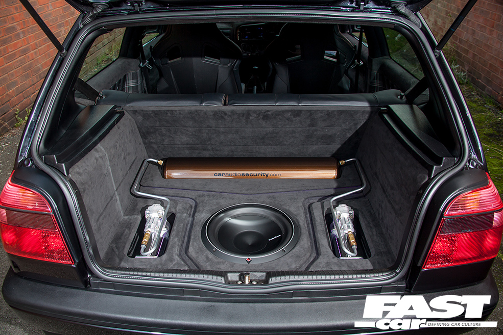 Having gone to the trouble of fitting a custom housing for the doubleDIN headunit, it seemed a shame not to add some serious audio upgrades to go with it. Custom door builds were fabricated to house component speakers, while the boot features a recessed sub as the centrepiece of the build.