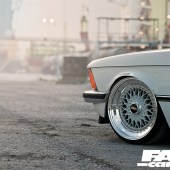 BBS Super RS 16-inch wheels (7-inch front, 8-inch rear) with Nankang tyres; custom made air ride suspension using four separate Accu air system – kit made on base of BMW E30; chassis notched; standard brakes.