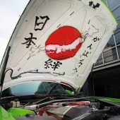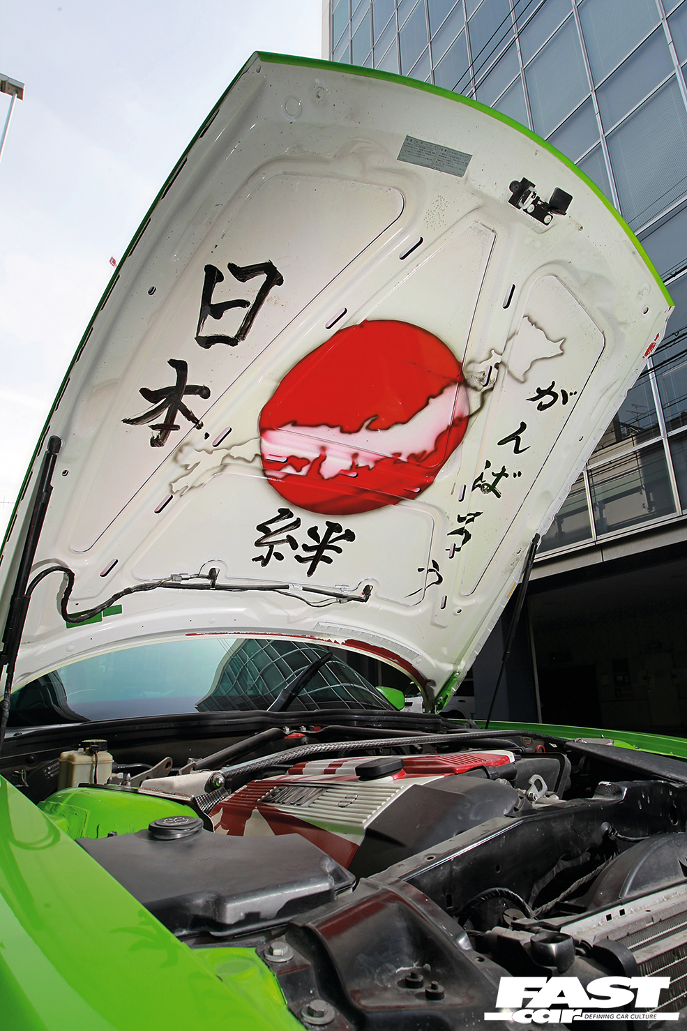When it comes to the engine, this Z3 is all about the noise from the straight-six! The Peerless straight-through titanium exhaust system has been created with the sole purpose of making a right racket. No other mechanical modifications have been carried out, just some aesthetic touches where the guys from Peerless were let loose with an airbrush under the bonnet. They came up with a Nisshoki (old Japanese sun-mark flag) for the straight-six’s head covers, as well as a Gambare Nippon sign on the back of the bonnet – a sign of support to the nation following what the people of North Japan had to go through during the earthquake and tsunami of 2011.