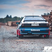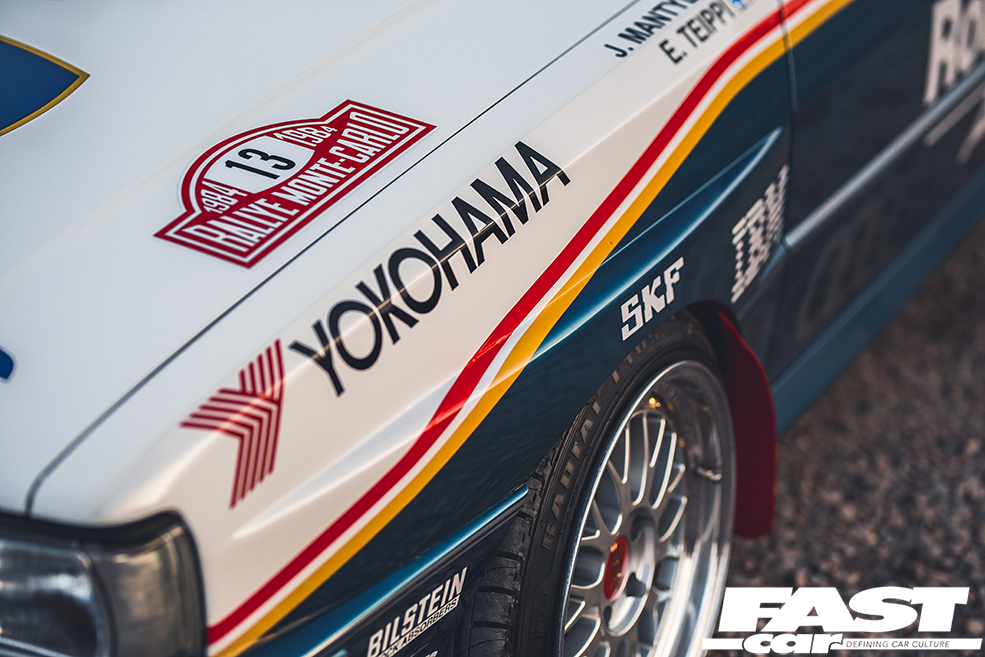 The real talking point, of course, is the eye-catching Rothmans livery. Part of the inspiration for this was the fact that the car’s original paint is a rich dark blue, and this tied neatly into Juice’s notion that he wanted a motorsport-inspired vibe for the car. There followed a protracted period of painstaking design work, creating a faithful tribute to the livery worn by John Bosch and Steve Bond’s Ur-Quattro at the Ypres 24-Hour Rally in the mid-1980s. Working in harmony with the hunkered-down stance and motorsport wheels, it presents a truly arresting profile.