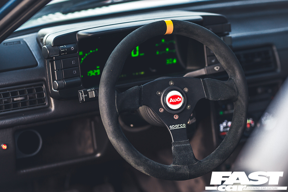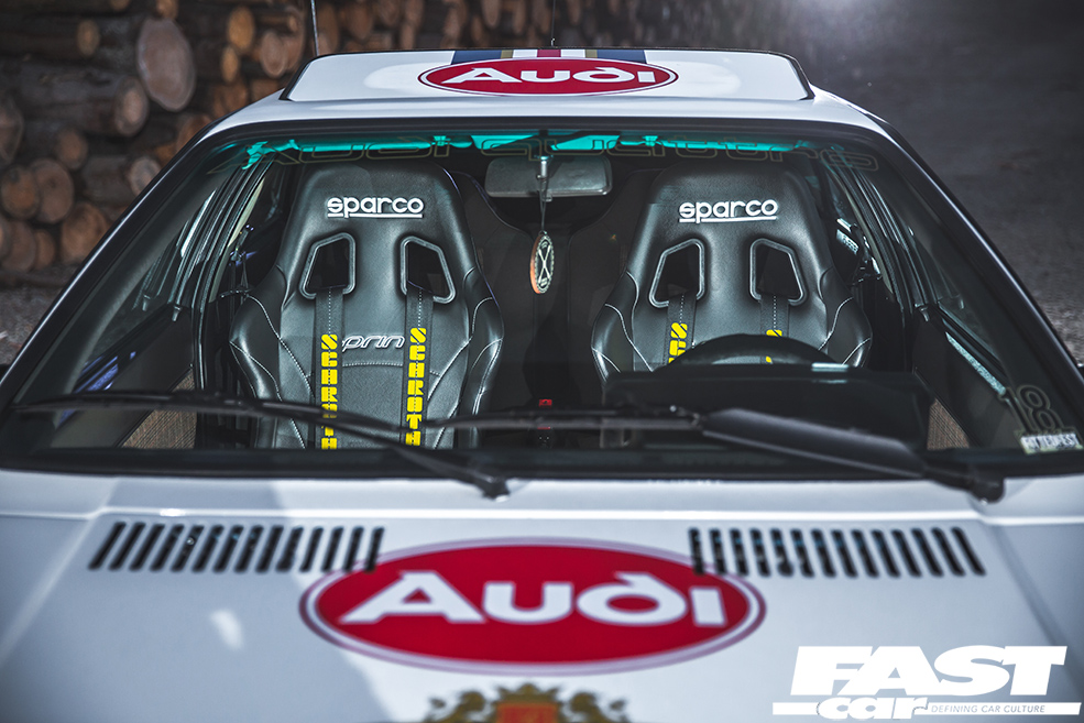 So this has been a labour of love; an artistic tension between period-correct restoration and rally-tinged mods. “The biggest hurdle has been finding original parts,” says Juice. “Audi simply got rid of some of the part numbers when the production of them ended, so comparing all the possible VAG codes I managed to piece it together with different aftermarket part numbers – it’s a very time-consuming process! But it’s important work, these cars need to be saved and kept alive. Information and knowledge must be passed from older enthusiasts to the younger ones, so we can enjoy seeing these cars driving around in the future.”