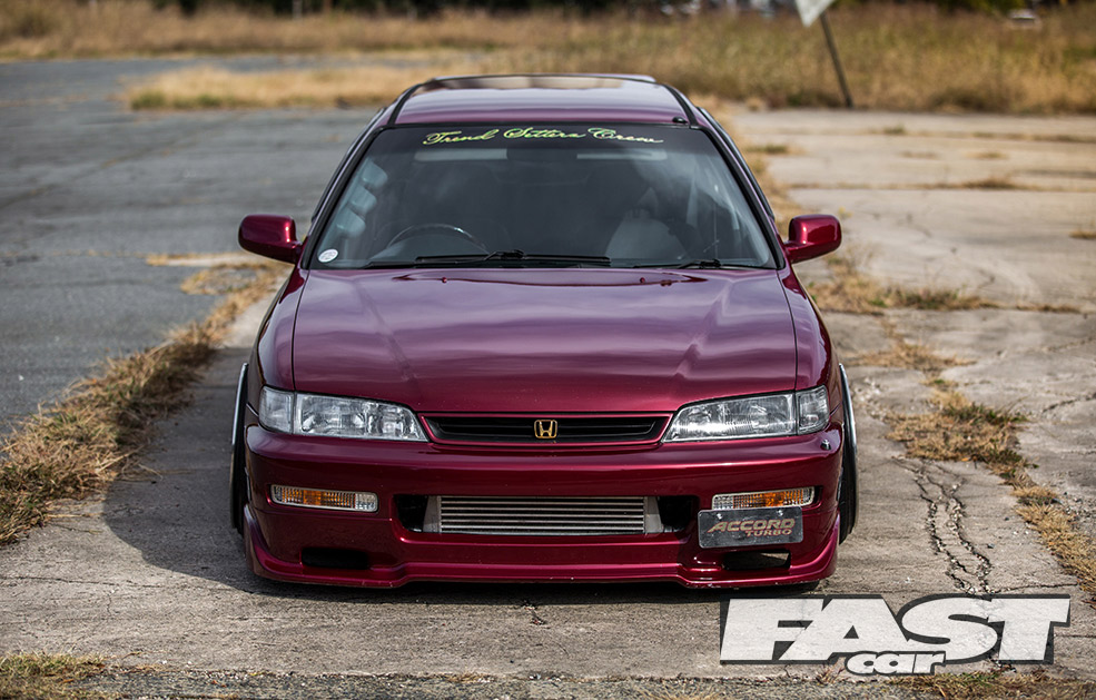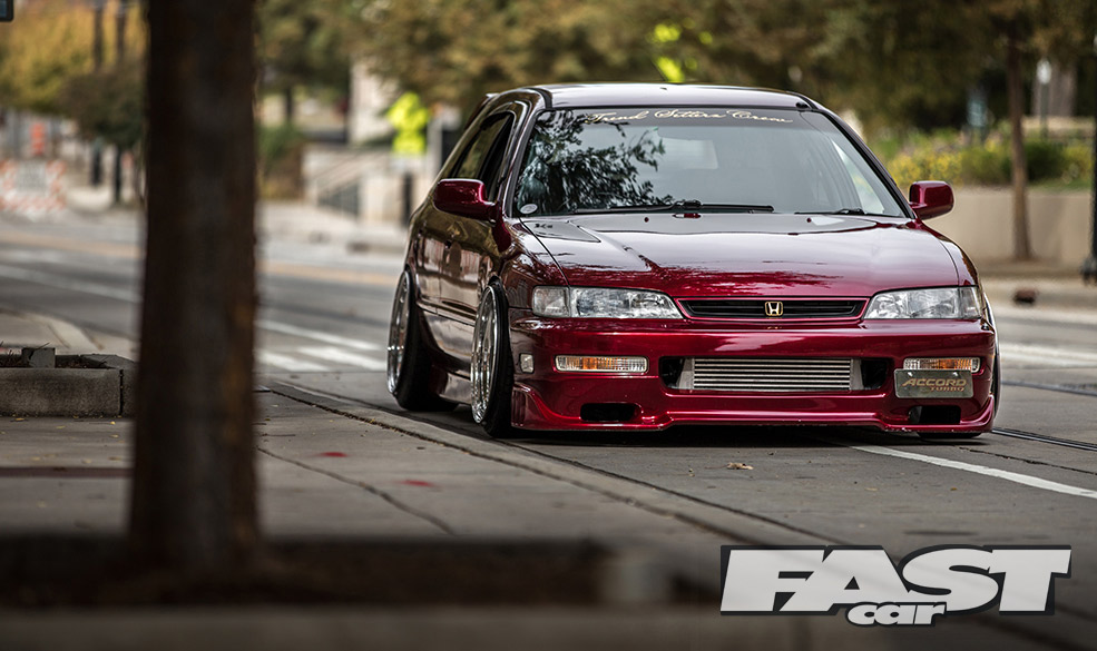 Now we’re well aware that Honda’s engineering nous and clever thinking filtered all the way down from the likes of the NSX to the ever-popular Civic. But it’s fair to say that the fifth generation Accord never exactly set the world alight in factory guise. Worthy load-lugger and dependable family transportation device, sure. But a car capable of startling performance and stunning looks? Nah, not really.