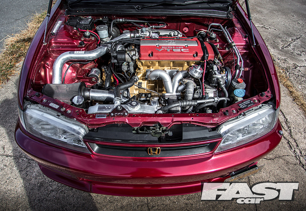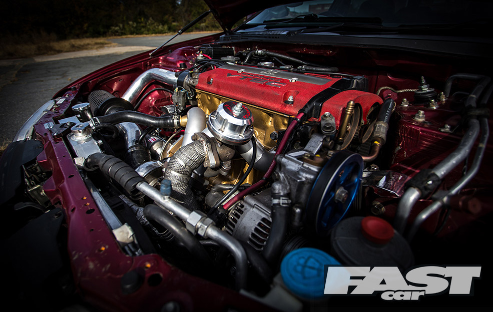 “I bought a complete H22 Treadstone turbo kit, which included an intercooler, a Turbonetics ball bearing turbo and a Tial wastegate, then set about fitting it to the new engine,” muses Bhavin.