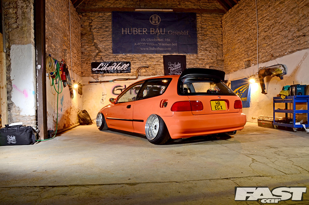 Before the car was prepped for paint, however, Jorge felt it prudent to install the air-ride setup he’d rescued from his previous Civic. Well, you would, wouldn’t you? It was a straight fit, barring a few tricks and tweaks, and while he was at it Jorge sent the front hubs off to Gizfab in Skegness for them to be shortened. The boy had plans, you see… having spoken to MPC Motorsport over in the States, he figured the ideal setup for the EG would be their drop forks and rear control arms – which they gave him a hefty discount on, simply because they thought his cars were cool! How’s that for customer service?