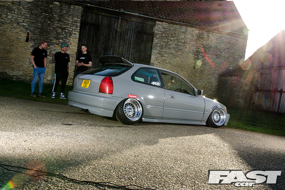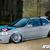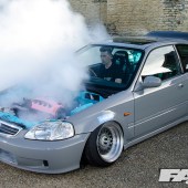 With a quick shuffle through the parts store and another visit to GizFab, Simon found himself with the UK’s first Civic to be running double-digit negative camber on the front wheels, which also neatly solved the driveability issues. It’s one of those rare occasions when going more extreme makes the car more usable, and it all happened just in time for the car’s debut show, FittedUK. Sometimes things just work out, don’t they?