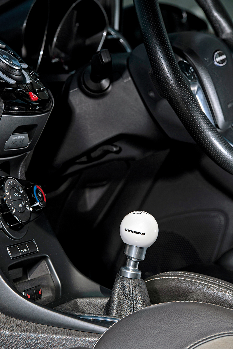 That means you don’t get an initial surge of power that then tails off; instead the Steeda ST is all very smooth and linear, and it just keeps giving, the longer you keep your foot on the throttle. First impressions (after driving various different Fiesta STs) are that it feels very composed, very OEM-plus in nature, and, dare we say, maybe even a little less exciting than some others that give you an immediate shove in the backside. But then you glance down at the speedo and think ‘how the hell am I going that fast?’; it’s quick, and deceptively so.