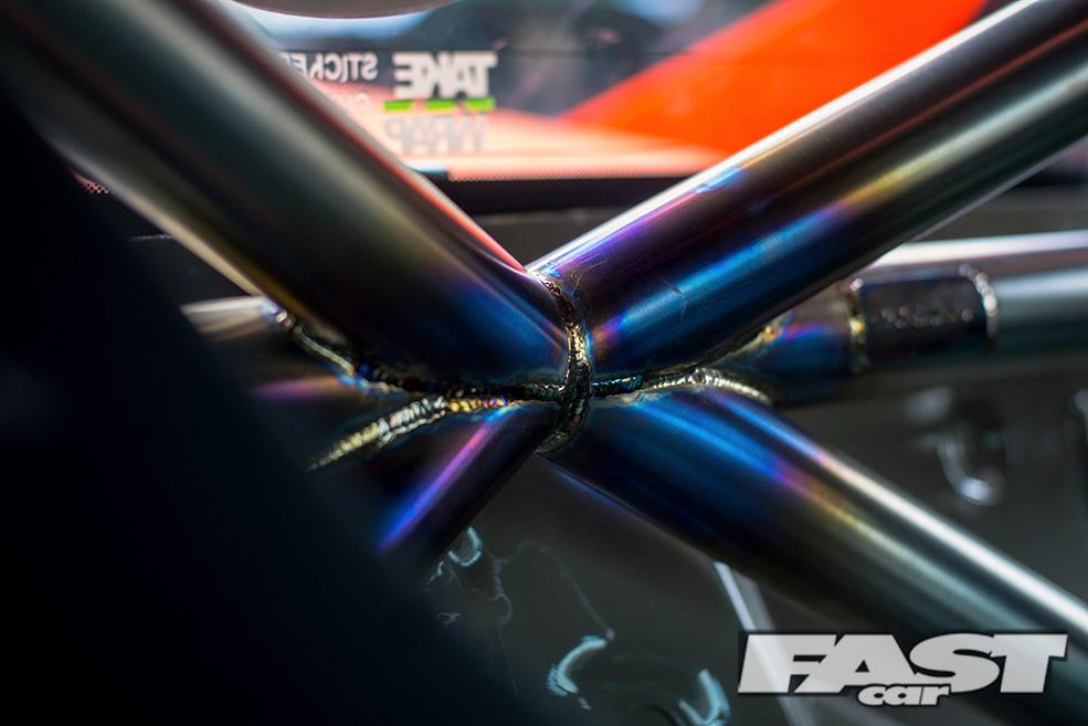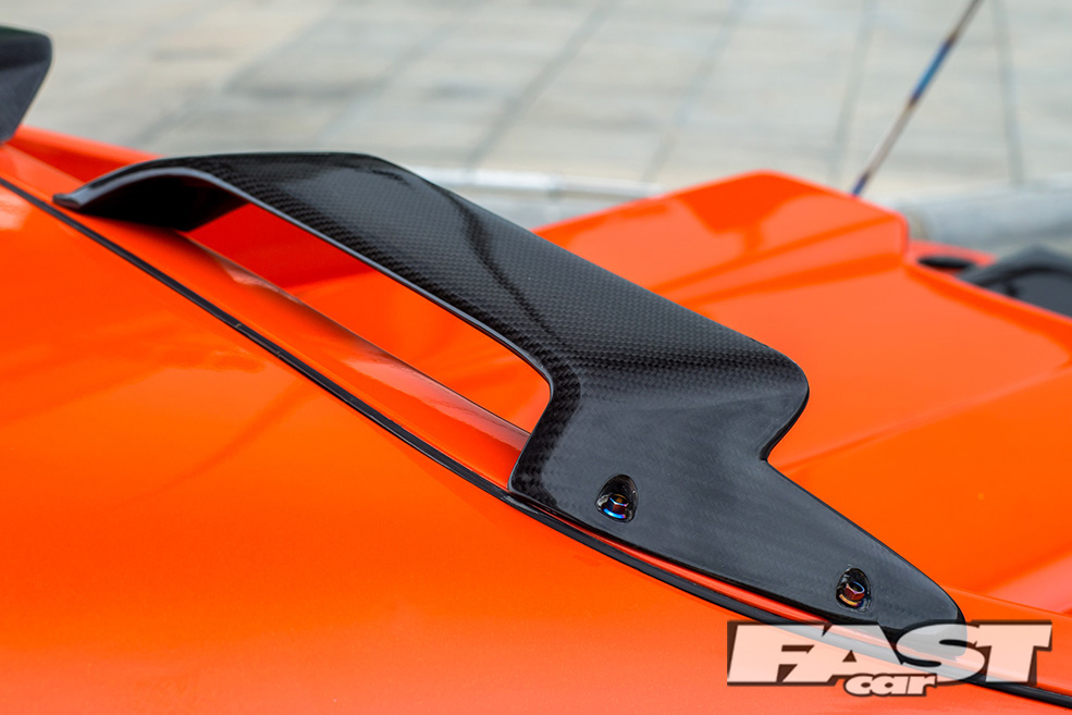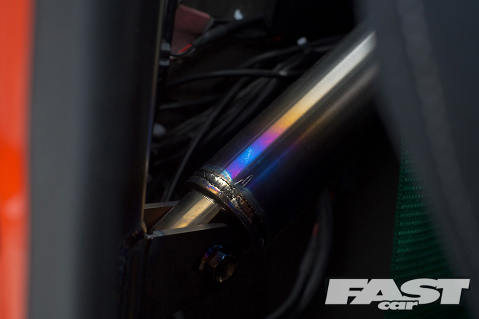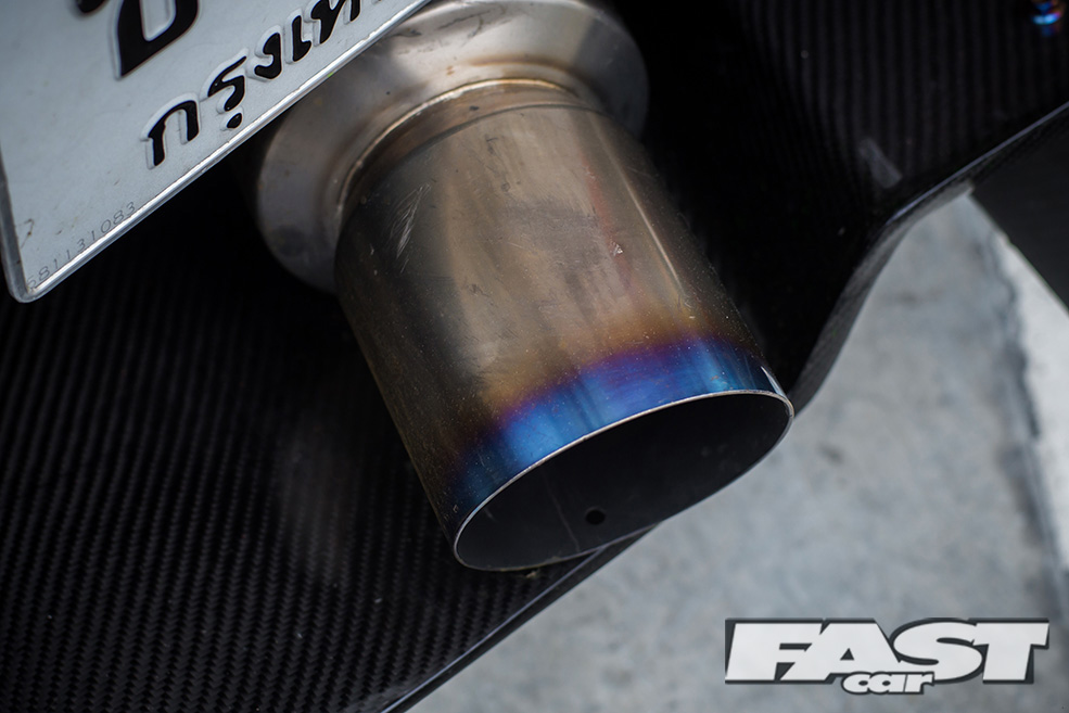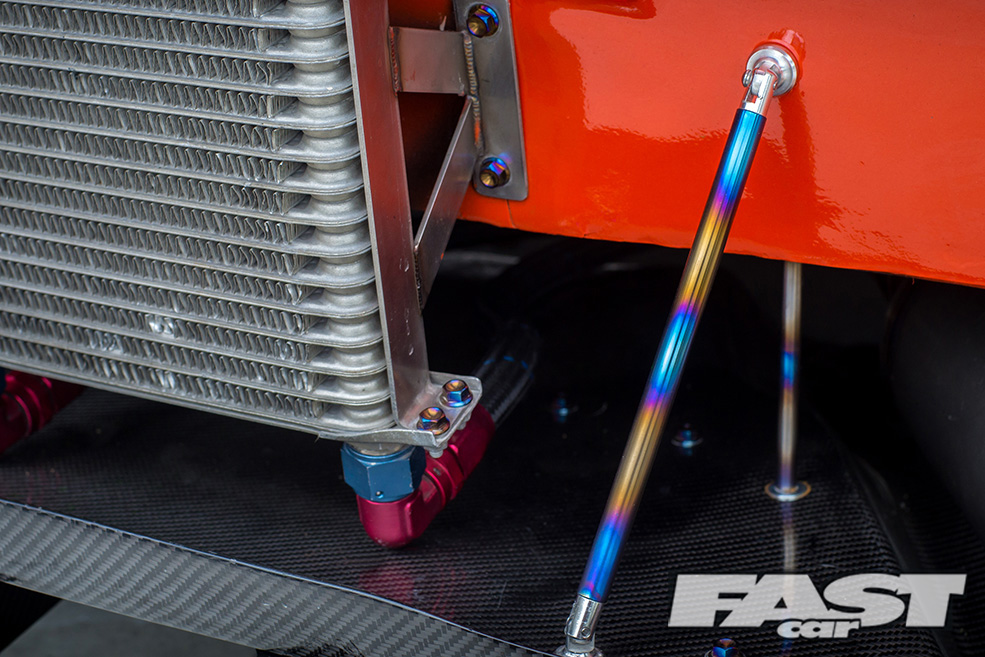 A peak under the hood instantly reveals more titanium, and a huge BorgWarner EFR 8374 turbocharger system that hides the 3SGTE inline four. The 3SGTE has been worked over and now has Eagle connecting rods, Arias pistons, HKS camshaft, larger valve springs and retainers. And APR rods and head studs to make sure it’s all sealed and can handle the 1.7 bar of boost.