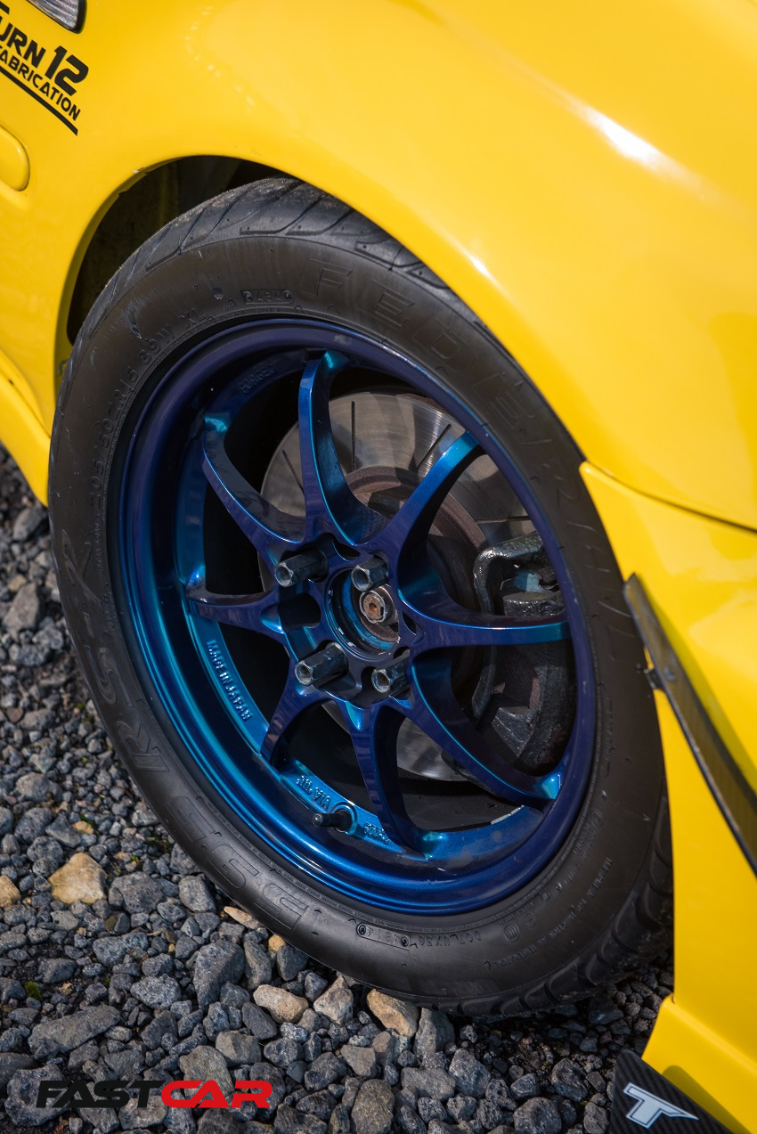 WHEELS & TYRES: 7x15in RAYS Volk Racing CE28N forged alloy wheels in custom blue flip paint with 225/45/15 Federal 595 RS-R tyres