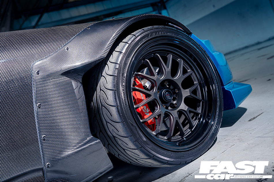 8×11” ET8 (front) and 8×12” ET8 (rear) Rota XXR wheels – satin Galaxy Grey and gloss black, Yokohama Advan Neova AD08 tyres