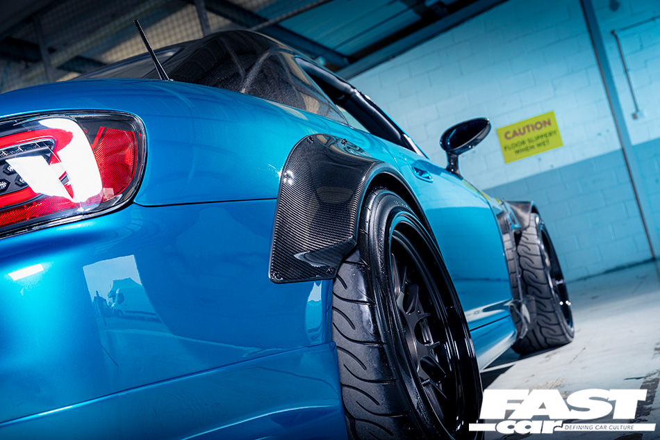 Dripping in carbon fibre and bristling with power, this supercharged Honda S2000 is whirling through a transition from track car hero to show-stopper.