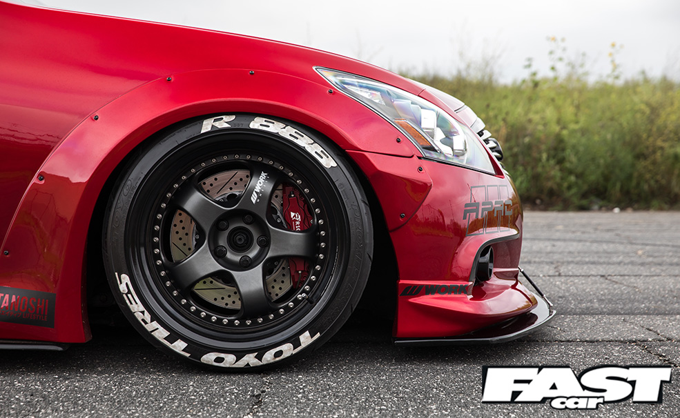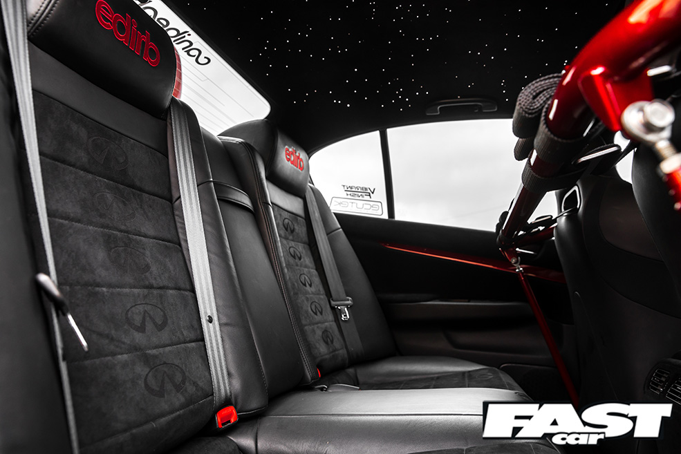 This particular German-rivalling saloon from Nissan’s understated sub-brand Infiniti came into Drew’s life in late 2012, with the initial intentions for the car a million miles away from creating the show-stopping machine that’s since emerged. “It was originally purchased for my wife, which people are normally pretty shocked to hear!” he laughs, continuing to explain how the announcement of his third child soon after snapping up the car meant that it unexpectedly fell into his hands as his other half required a slightly larger vehicle instead.