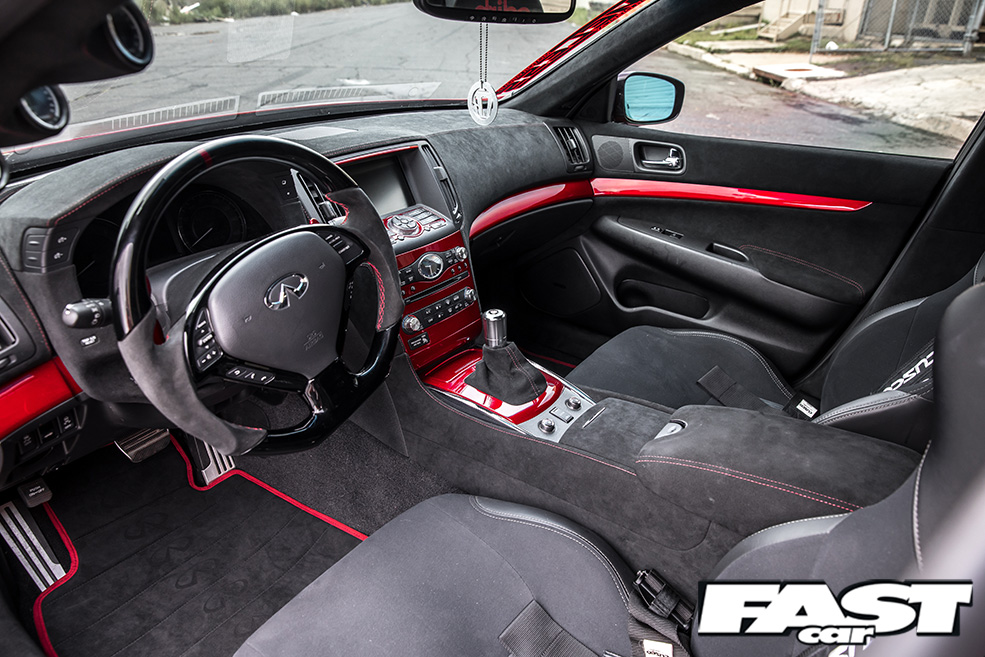 It’s just as well the car’s set up to be driven hard, too, once you pop the bonnet and discover the next jaw-dropping aspect of this inspirational ride. Now sporting a hefty Stillen/Vortech supercharger package on top of its V-oriented engine, the Infiniti now offers up over 450bhp to the rear wheels through its flappy-paddle gearbox. But that’s not where it ends – just look at that bay! “The fact is fully polished under there is a personal highlight of mine,” Drew modestly admits. “It’s the world’s first fully polished Vortech supercharger setup, and the process of getting it that way took over a year in itself to complete…” He certainly doesn’t do things by halves!