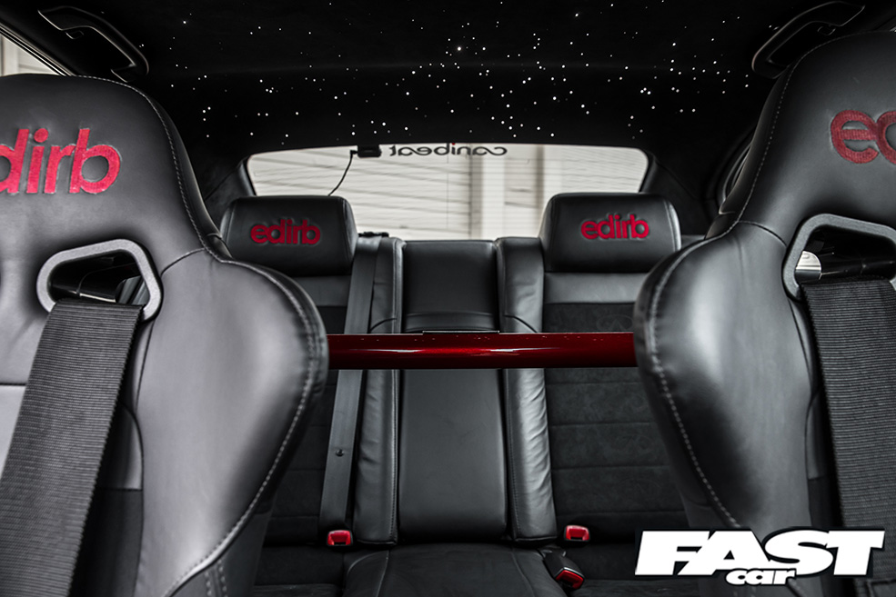 Soon developing the nickname of ‘Mars’ thanks to its new-found colour scheme, Drew explains how it was around this time that his obsession with astronomy began to make itself apparent throughout the build as one of the main themes of the car. It’s why you’ll find such unusual and inspired LED lighting not only in the usual spots such as the headlights and indicators, but in the form of the starry night-esque headlining and boot lining inside, too. “It’s made by poking tiny holes through the Alcantara with fibre optic lighting underneath,” Drew explains. “It actually simulates real constellations; my family’s zodiac signs are visible in the boot lining.” Where else have you seen such overwhelmingly impressive attention to detail as that?!
