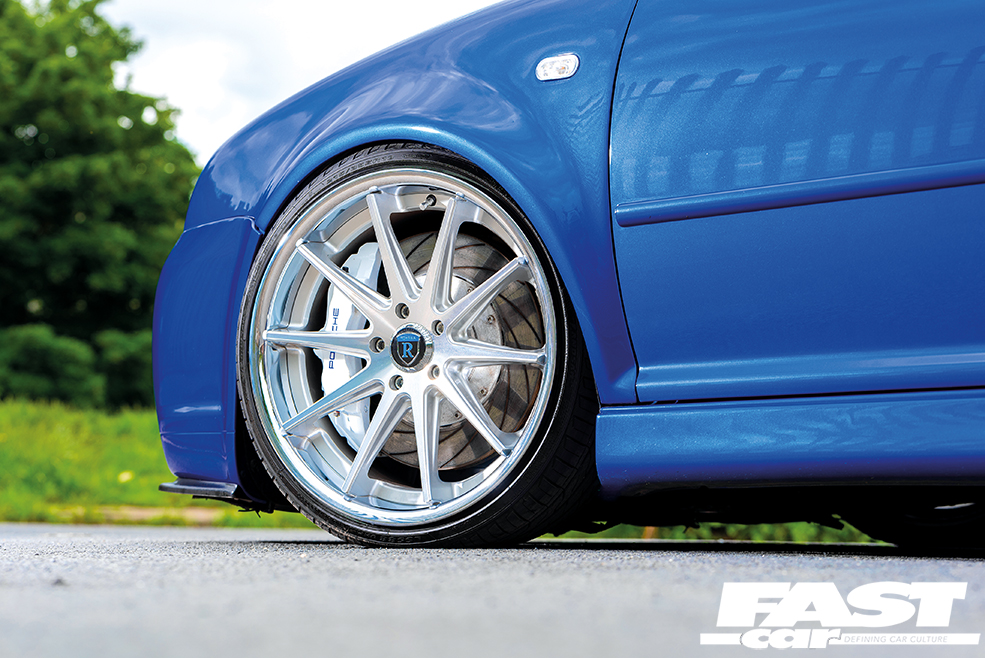 With the Golf laying frame like a true show-stopper, naturally it was necessary to find just the right wheels to fill those newly tarmac-adjacent arches. Paul’s a bit of a butterfly when it comes to rims, flitting from design to design as the fancy takes him, and it took a few different sets before he settled on the current hoops: a set of 8.5×19-inch Rohana RC10 imported from the States. Drink in the effects while you can, as the car will probably have different wheels before too long…!