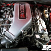 A baffled oil sump hints at the racing DNA, as does that huge fuel tank hanging underneath the car. Measuring 75 litres, it enabled American Trans-Am road racers and endurance racing teams to go for more miles between refuelling, plus being a properly bladdered and baffled fuel cell it passed FIA safety regs. But the tank did cause a problem: it made fitting a conventional rear-exit exhaust system impossible. Famed exhaust manufacturer Borla came to the rescue with very loud and very ostentatious twin side-exit pipes, which in hindsight just add to the quirkiness and uniqueness of the car.