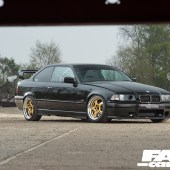 E36 316i coupé non-sunroof shell, HSD coilovers front and rear, E46 lower arms, M3 hubs, front and rear strut braces, poly bushed front lollipop arms, fully poly bushed rear end, front subframe and cross braces.
