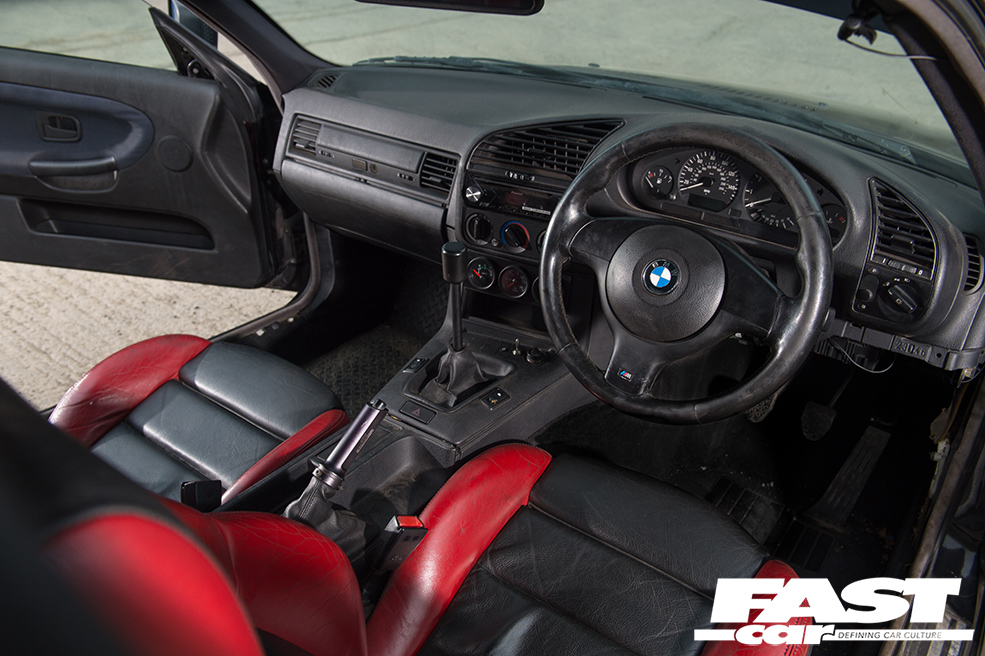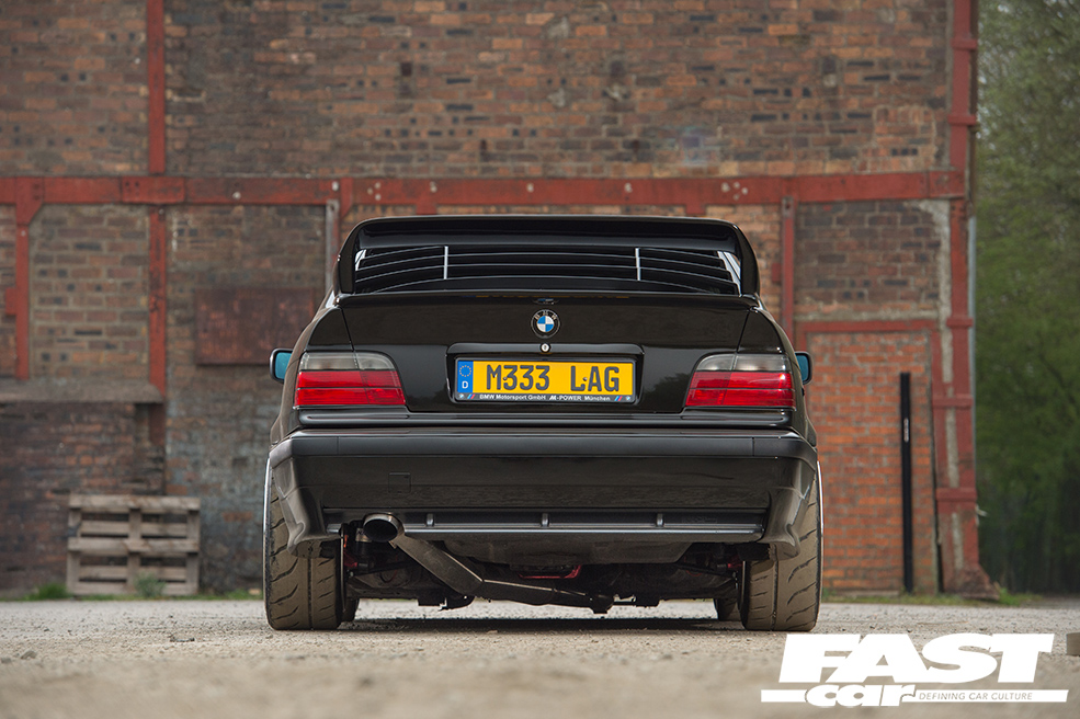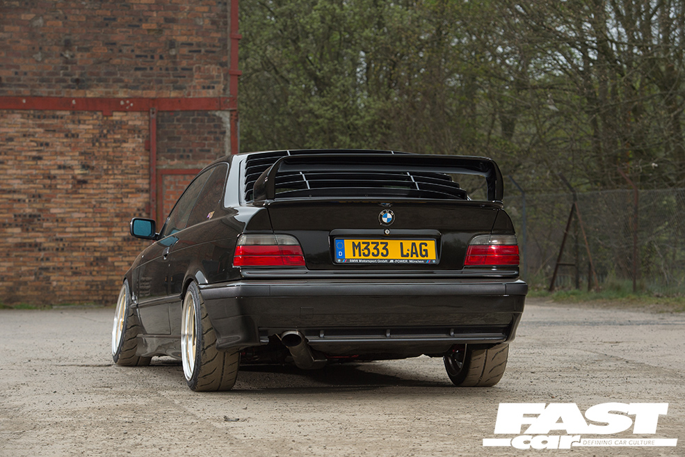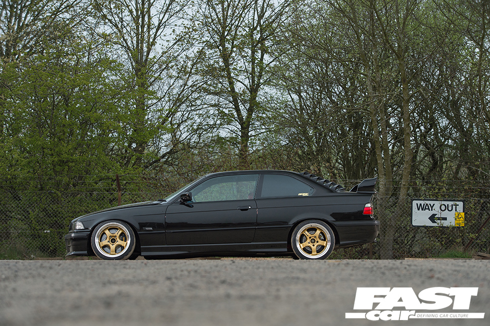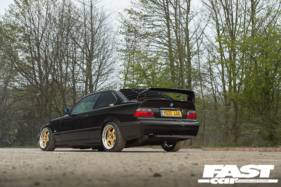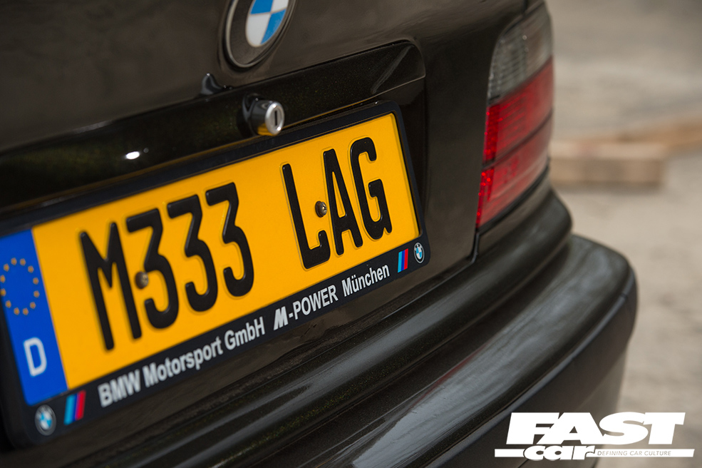 While the engine set-up is no doubt the main feature of this car, it’s hard to miss the fact that the car looks almost show quality, and that’s because Scott literally stripped the car right down when he bought it to make it a really immaculate example; something of a rarity in E36s these days! Genuine M3 bumpers and a M3 GT rear spoiler were fitted, and the whole car was repainted. It was just as comprehensive underneath too, with the whole underside made good as new, with everything powder coated or painted, along with fresh bushes and a complete disc brake E36 328i rear end – a big change from the base model drum brakes the car had when he first bought it!