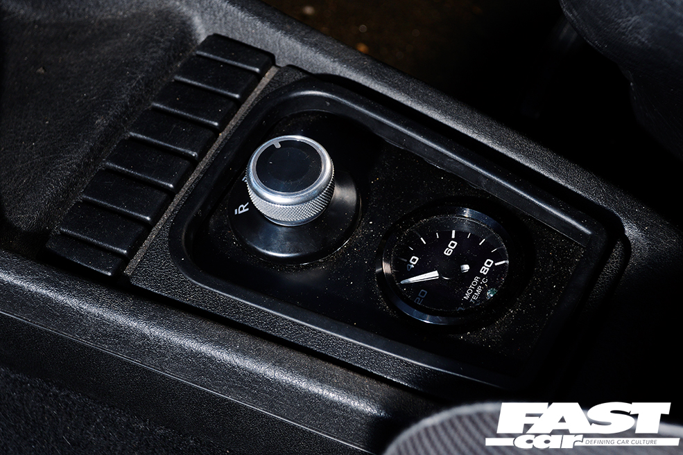 Step inside and again things initially don’t look that different from a standard Mk2 GTI, the seats, dashboard and even the steering wheel remains familiar. Begin to take a closer look and you’ll notice a motor temperature dial now sits where the gearstick once lived and there’s no clutch pedal either. A new floor mounted electric throttle and brake pedal are all that’s now needed! Housed within the Mk2’s standard dashboard is an added starter switch and heater switch, while custom dials show MPH, Battery state of charge and an Amp gauge replaces the rev counter. It’s an incredibly well thought through conversion throughout, remaining sympathetic to VW’s original.