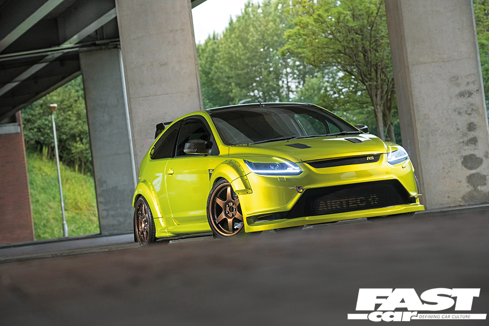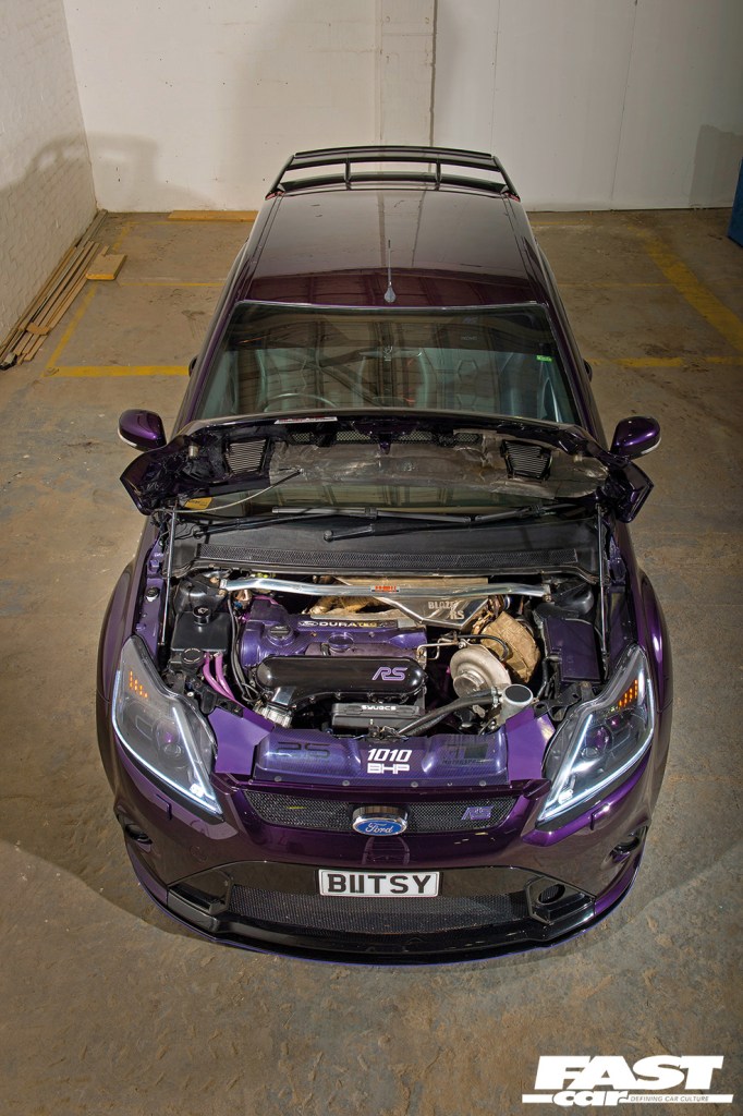 Grant has yet another modified Ford Focus RS in his impressive Ford collection. It’s yet another magazine front cover star. And yet again, this car has undergone a significant transformation to become a unique and eye-catching machine. Grant intended Blaze, the 1000bhp monster, to be a show car. Therefore, he built Shadow – named for its once stealthy shade and because it lived in Blaze’s shadow – so that he could have something to use on track too.