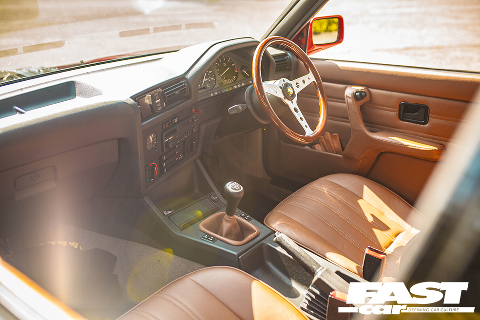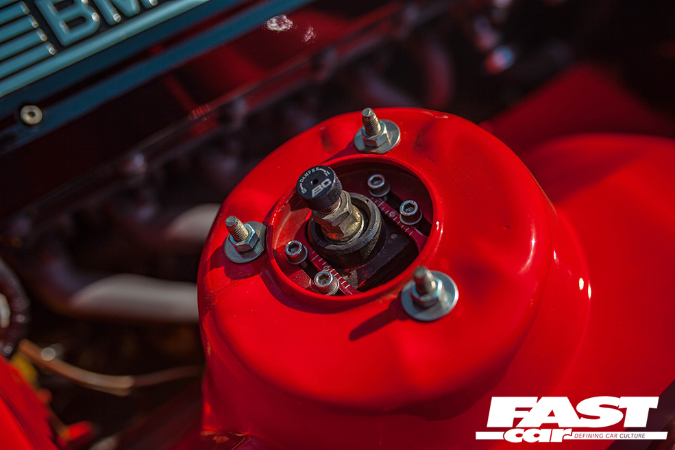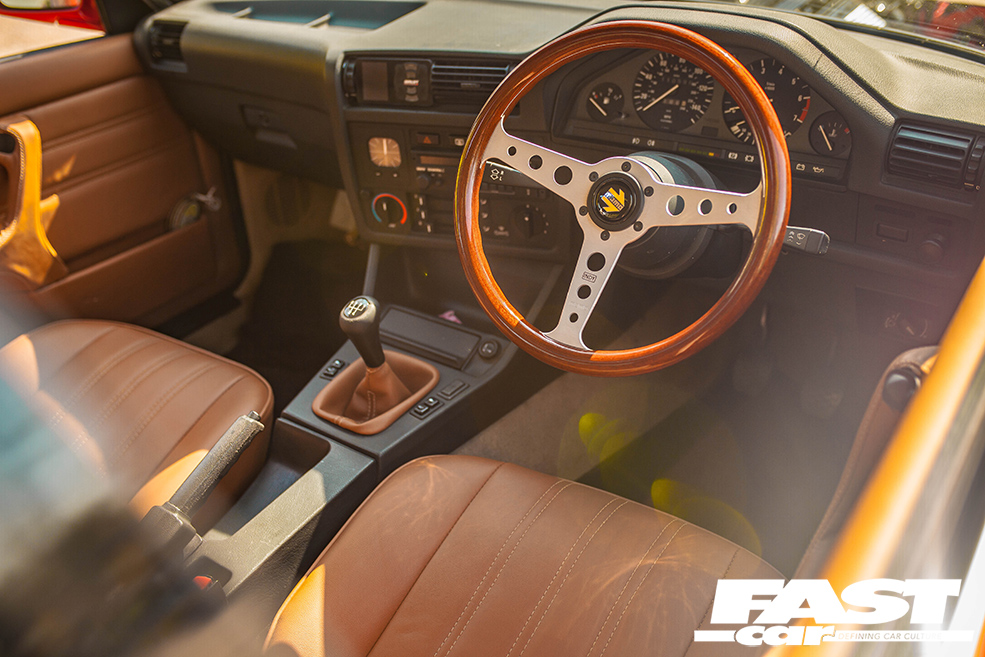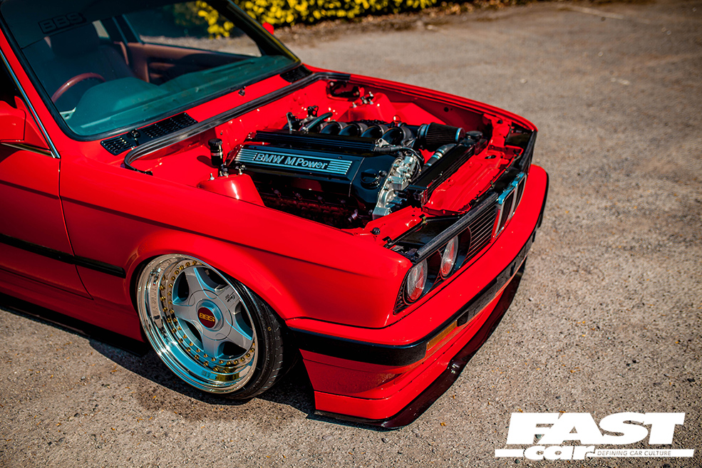 Suffice to say that’s mission accomplished, it really is one of the sweetest bays we’ve seen in a long time. But form and function work hand-in-hand with this one – it was never the intention for this to simply be an out-and-out show car, it has to walk the walk too. You can’t have a full-fat M3 engine and not use it to its fullest, can you? So the LSD out back’s been converted to an appropriate M3 ratio, and a lot of thought’s gone into the chassis to ensure that the E30 can handle having its stock power figure increased by around 240-percent. Reece has installed a full Air Lift Performance setup, cunningly controllable by his phone, and we know how keen those Air Lift guys are to hone their suspension components on the track; he’s also fitted a shiny new rear subframe and converted the rear drums to discs, as well as polybushing everything throughout the chassis to give it the fresh and tight feel it deserves. This car, as well you may hope, goes every bit as well as it looks.