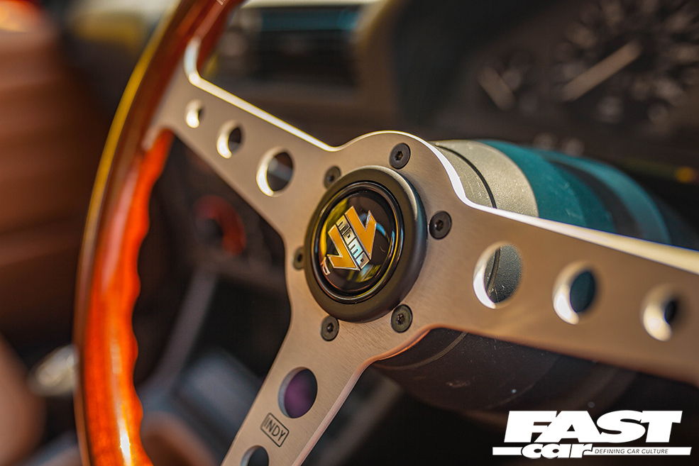 Full retrim in tan leather with light tan stitch – including air tank, 3P valve block mounted over tank with 8x hard lines, air-ride control mounted in dash, MOMO Indy steering wheel