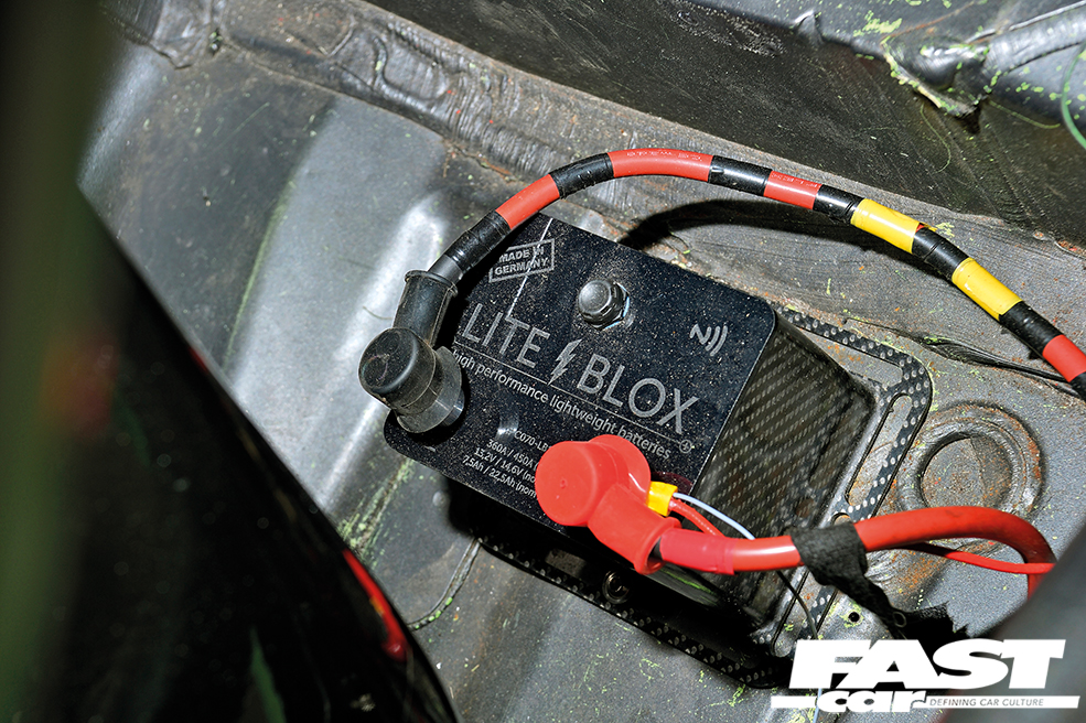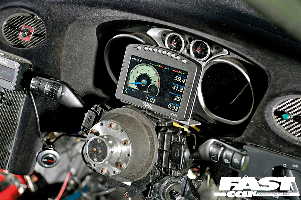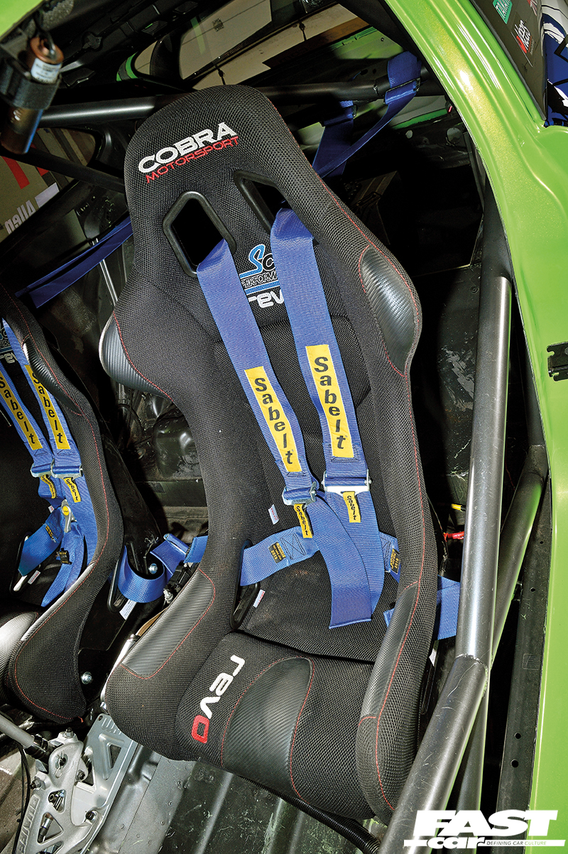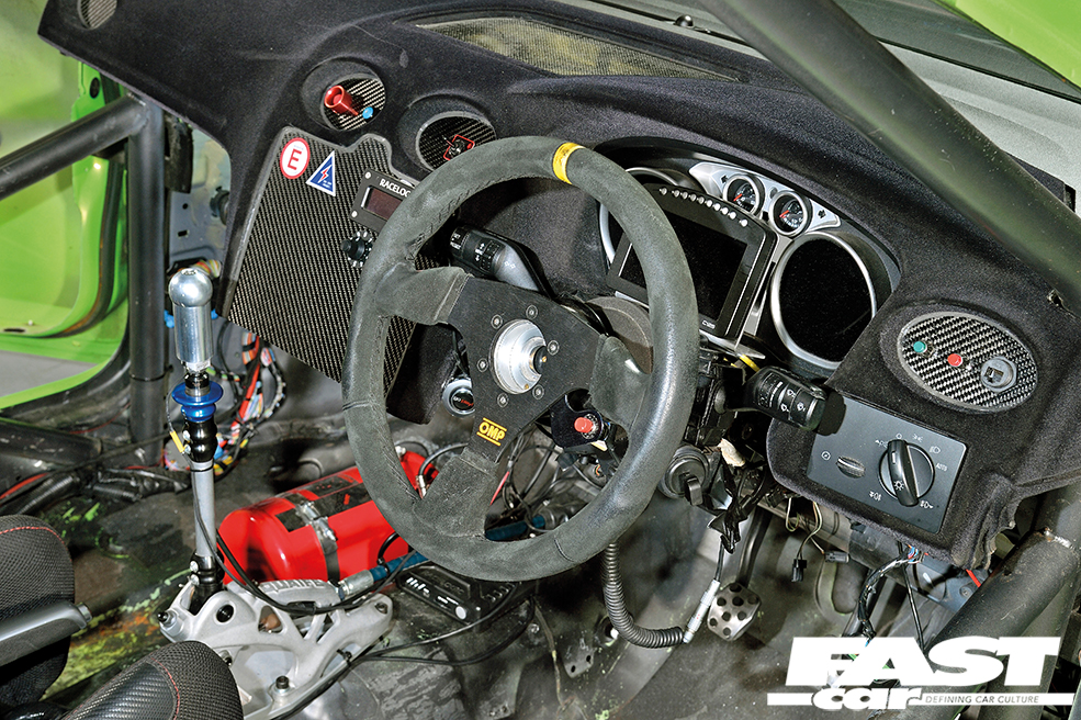 Custom Cages T45 6-point Clubman roll-cage, OMP steering wheel, Sabelt harnesses, Cobra Suzuka bucket seats, Motec c125 data-logging dash, Liteblox carbon fibre lithium ion battery