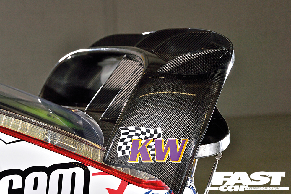 ACR Composites carbon fibre roof, WRC vents, WRC body kit and Evo splitter, carbon fibre bonnet, M-Sport carbon fibre WRC wing, M-Sport carbon fibre hot climate mirrors, Polycarbonate windows