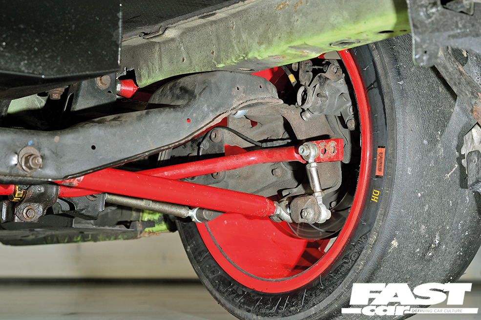 KW 2-way Competition coilovers, custom ARC tubular rose jointed wish bones and track, toe and camber arms, Whiteline front and rear anti-roll bars, rose-jointed drop links