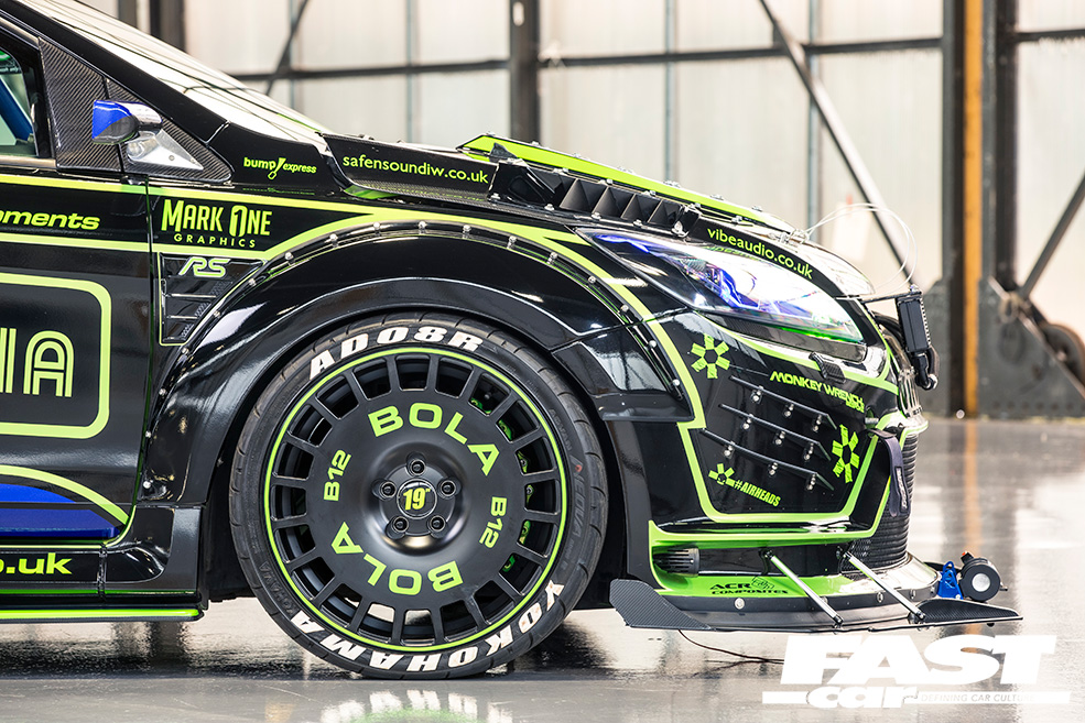 So Rich, being Rich hightailed it back to the Isle of Wight and, the Monday after Trax, the tuned Focus RS Mk2 was stripped down and lying in bits strewn about his garage. While he pondered his next move, he got on the phone to Bola Wheels to see if they’d be willing to make him a set of B12s in a 19” diameter, which they were happy to do, and this acted as a real shot in the arm for the project.