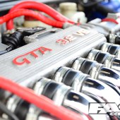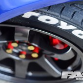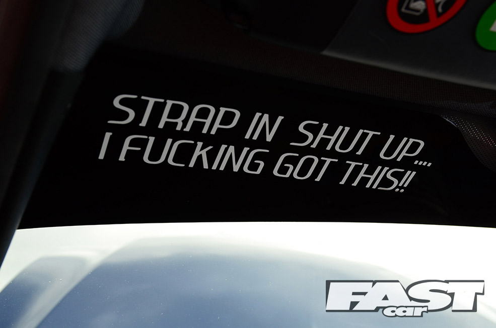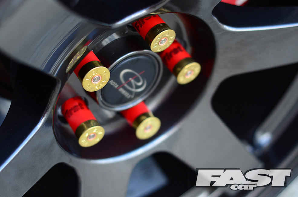 A set of wide Rota Grids were therefore ordered, along with a super-cool 147 Cup front splitter which complements the aggression given off from those bubbly GTA arches, topped off with some canards for that ultimate race look. Seeing a track day-inspired example of this car, complete with its tyre-painted sticky Toyo rubber, is something that’s never really crossed our minds before. But it looks completely badass in the flesh.