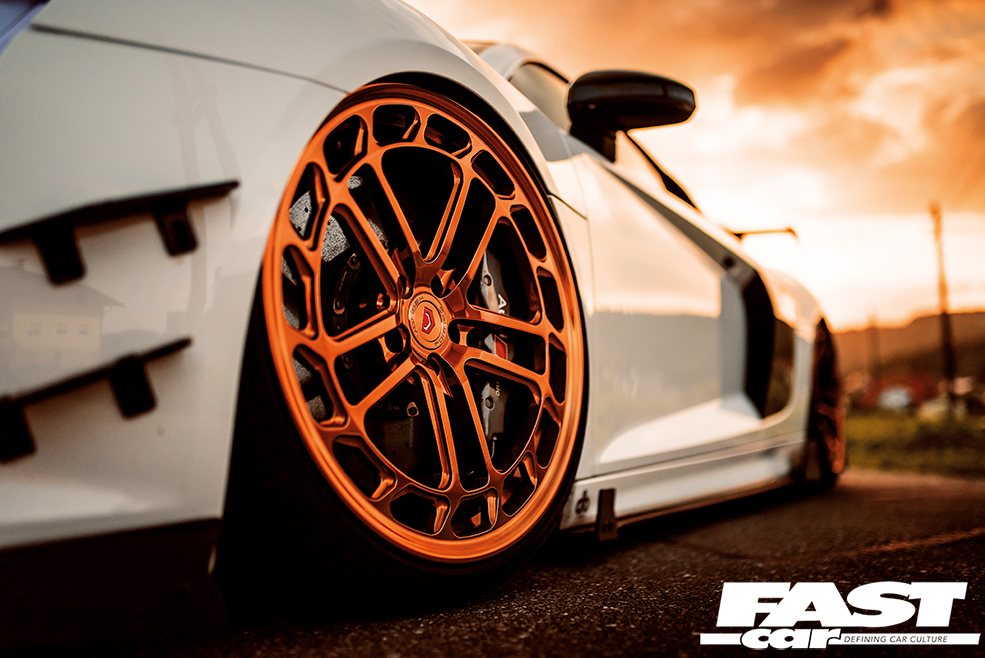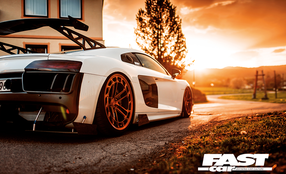 So when back in the early days of the new millennium our friends at Audi started throwing around rumours of a new supercar project they had on the drawing board; a mad motor with Lambo looks, aluminium and carbon fibre construction, an insane mid mounted V8 powerplant and a racecar suspension, most of us dismissed it as another exercise in factory fabricated fiction. The boys at Audi Sport promised a road going version of their successful Le Mans racer, even nicking the name “R8” from the concept, more than a mere sports car, this would be a racecar with number plates which anyone could stroll into their local dealer and buy. When they displayed a futuristic groundbreaking vision of awesomeness at the auto shows around Europe in 2003 we were intrigued but still highly suspicious, once barely disguised road going test cars started showing cruising the autobahns, disbelief was beginning to be suspended and things started to look promising. “When I first saw the car in person I couldn’t really believe it,” recalled Otto Winter, “It looked like a Ferrari or Lamborghini with an Audi badge on it.” The motor mad Munich resident was as gobsmacked as the rest of us, Audi had actually done the impossible; given enthusiasts a car that was everything they had promised and more. “I grew up loving and believing in the Audi brand and the R8 was like a vindication, a reward to Audi guys proving to everyone something we had always known, that our cars were truly world class.” The German gearhead had spent a few years working his way up the Ingolstadt range, eventually finding himself behind the leather wrapped wheel of a much modded RS6 C7, he admits that though the race inspired V8 wagon did everything quite perfectly, the lure of the two seater flagship was stronger than he could resist. “It took a long while before I could put myself in a position to trade the RS for the R8, but I made getting one a motivational goal.” A couple of years ago in late 2017 the six was eventually swapped for an eight, and although the seating capacity went down the cylinder count added a couple of slugs.