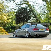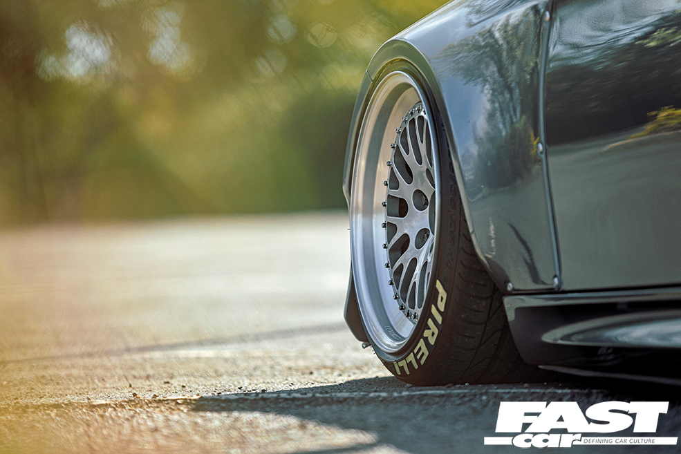 11×18” ET-12 (f) and 14×18” ET-3 (r) CCW Classic forged wheels with 255/35 (f) and 315/30 (r) Pirelli P Zero tyres, Air Lift Performance suspension with 3P management, poly bushed M3 arms, poly bushed subframe, Whiteline front and rear anti-roll bars, EBC USR discs with Yellowstuff pads