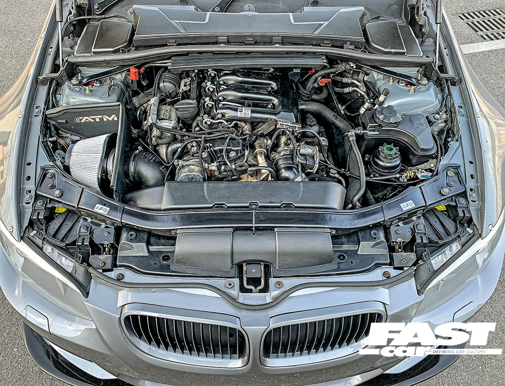 However, anyone who’s ever asked a barman for ‘a pint of the black stuff’ and been rewarded with a disappointing tankard of Bovril will be keenly aware that cramming darkness inside isn’t always the path to happiness. It’s no secret that diesel engines have never been auto manufacturers’ mill of choice when it comes to sports cars. Sure, some have bucked the trend (Peugeot won Le Mans with diesel power, the original Skoda Fabia vRS was the first diesel hot hatch, there was the Trident Iceni which… actually, no, forget that one), and Volkswagen has been keen to offer such creations as the Golf GT TDI for decades, but these things are frequently met with a relative lack of enthusiasm from the buying public. BMW, however, has long been better placed than most to exploit the potential of dervs in hot cars, hence the prevalence of diesel motors in balletically poised machines such as the E92 coupé – these sold like hot cakes when they were new, and they’re enjoying huge popularity today, not least because they’re so damn tunable. And the example you see here – well, this illustrates the point with flair and panache. Yes, it’s a BMW 335d E92. And yes, it’s also some manner of road-legal track weapon. With vibrant power, enough torque to uproot a decent-sized oak tree, and a rear wing wide enough to stabilise the aero on a Piper Cub, this is evidently a diesel we need to get to know.
