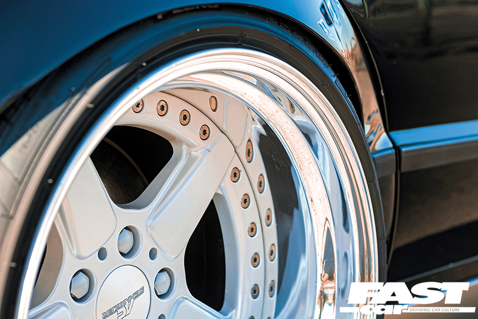 Of course, while a drop will instantly make a car look better, even one as dramatic as this is still very much reliant on the right set of wheels to really set it off. You don’t need us to tell you that the set chosen for this build looks simply sensational and the visual drama and impact these wheels deliver is just off the charts. They are AC Schnitzer Type II Racing 18s with silver centres and polished stepped lips and they measure a substantial 9.75”-wide up front and a simply gargantuan 12.25” across at the rear and we can’t fully articulate just how good they look here and how perfectly suited they are to the E34. Classic Schnitzers and classic BMs go together like the most delicious food combinations you could possibly imagine and this combo is a truly delectable one.