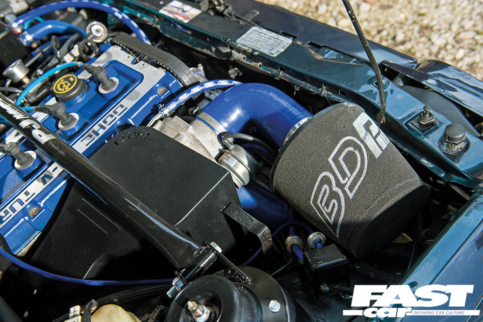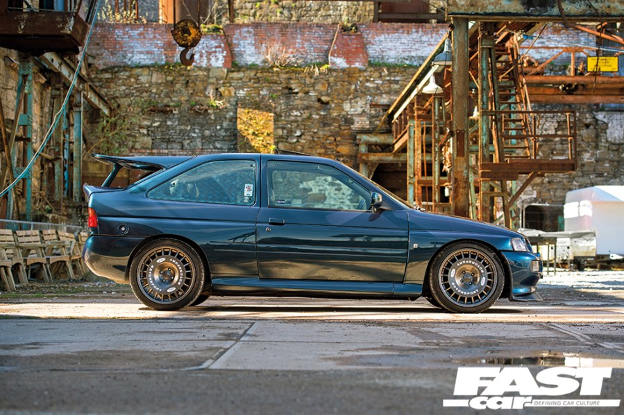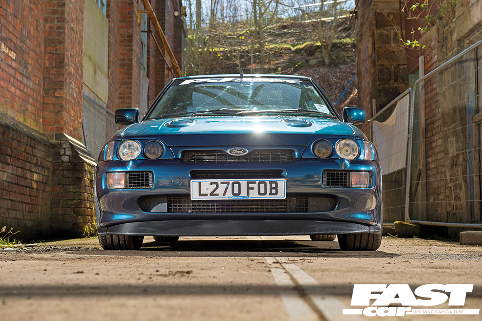 “I was looking for a Sapphire for a while, but I kept an eye on Escort prices too since that’s what I really wanted,” he says. “One day this EsCos popped up in a salvage yard in Brighton for Saph money – it needed some work doing to it, but after a few phone calls I borrowed a trailer and took a chance on it! After getting it home and properly inspecting it, the car just needed a wing pulling straight, a bumper and some lights. It was running a Stage 3 setup, although it was cutting out after a few minutes; after weeks of pulling my hair out trying to figure it out, a friend with a spare 4×4 Saph ECU threw that at me and told me to try it – and it worked!”