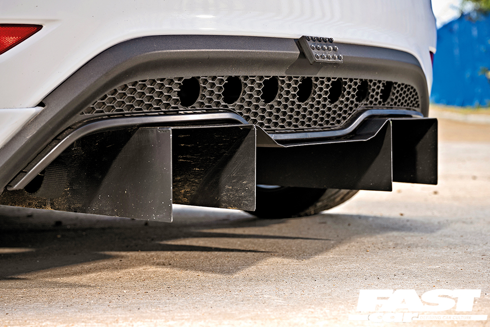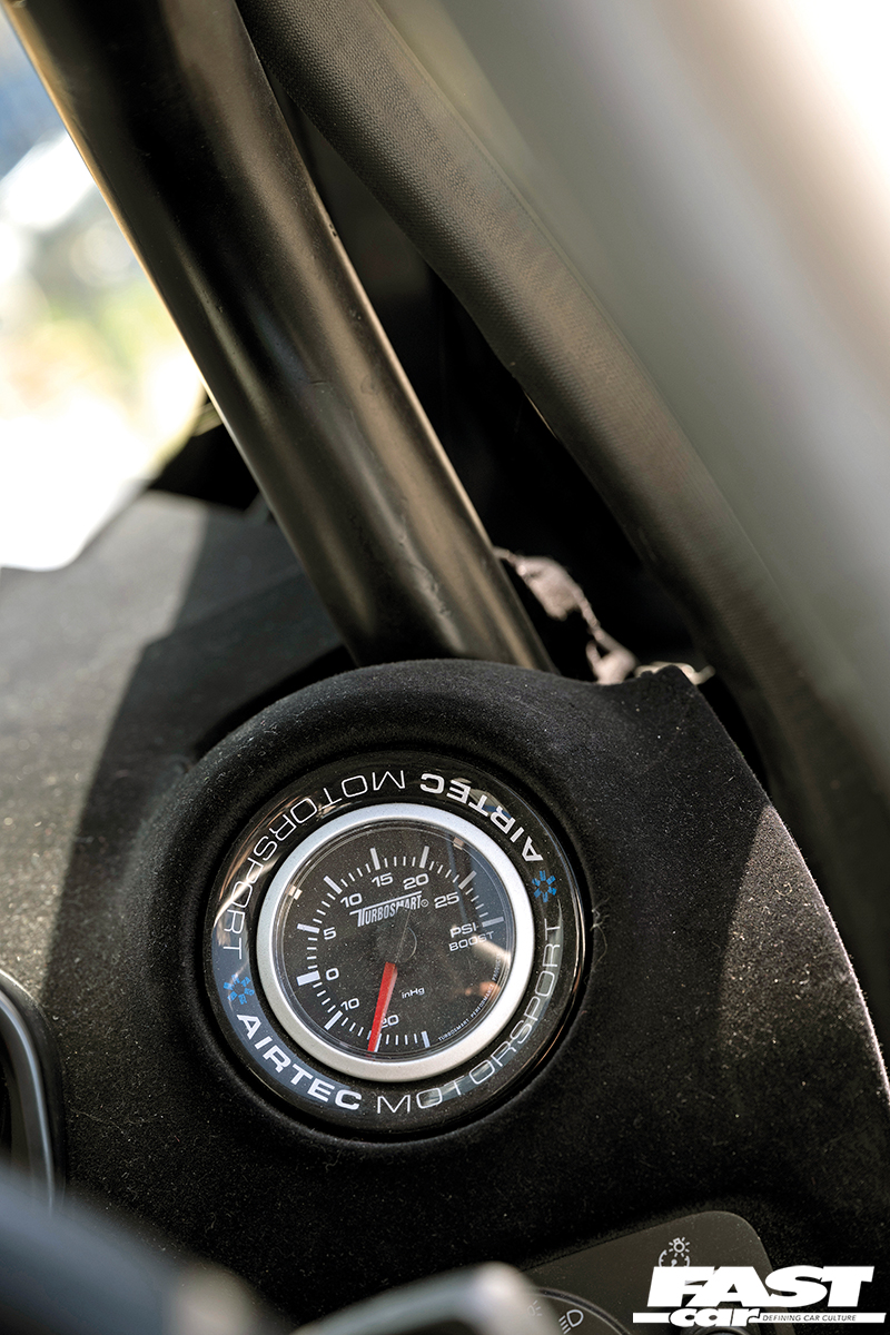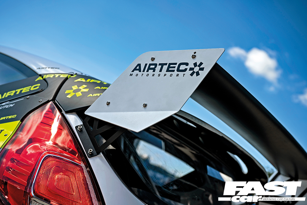 To match the new look of the pumped-up arches, the Airtec Motorsport Clubsport front splitter and rear wing were also developed on this car, and to finish the look, a custom rear diffuser was built in-house. At the same time, the boot floor was cut out and replaced with a flat section, which also helped to save weight.