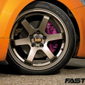 The chunky Mk2 arches hunker over Bola B1 alloy wheels without any hints of rubbing or catching; being 8x18in with a factory 225/40 tyre size they bolt straight on and just work.