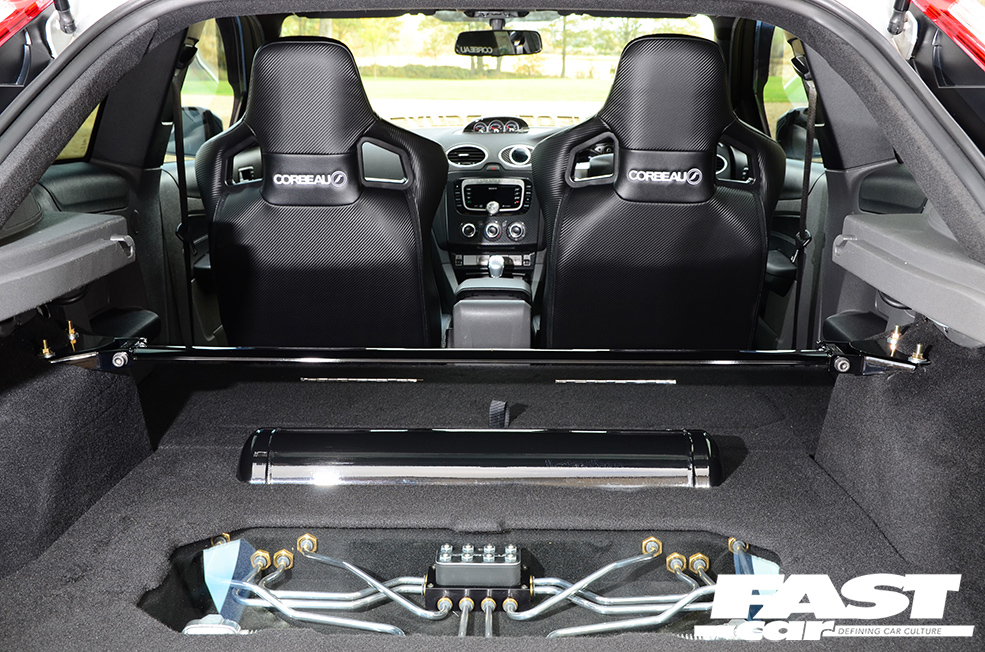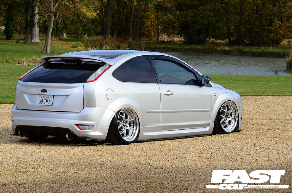 The next big change came in 2015 in the form of a full air suspension system – a first for the Focus ST in the UK but a job that the talented team at Plush Automotive was more than happy to take on. Two weeks after wheeling it into the Leicestershire-based firm’s HQ, the car was sporting a killer air system, as well as a subtle boot install and, most importantly, a stance to die for!