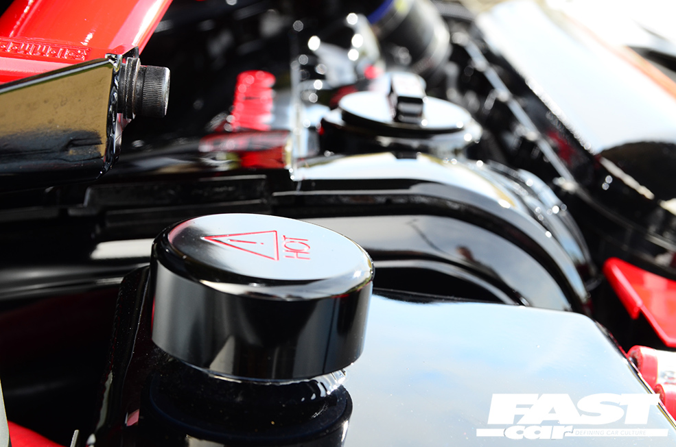 With the recent additions of a sturdier fuelling system and another re-map, performance figures currently stand at 330bhp and 400lb.ft of torque – more than enough to give Tim the white-knuckle wake-up call he needs during the occasional weekend blast and also providing the perfect match to the spotless way the engine bay itself now looks.