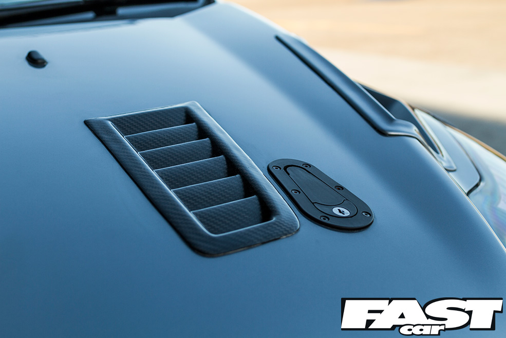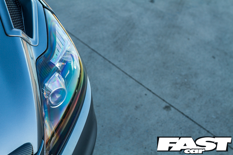 Outside, the XR5 has also seen hundreds of minor changes. There’s carbon fibre wherever you look, from the front grille to the rear spoiler to the door handles, while flashes of Ultimate Green set the whole car off. ‘I don’t have anything particular in mind aesthetically but I’m never happy with it… it’ll always look better if I change something new!’ The overall effect is set off perfectly by a full respray in Mercury Silver: the same colour as the 1969 Mustang owned by Ant’s father.