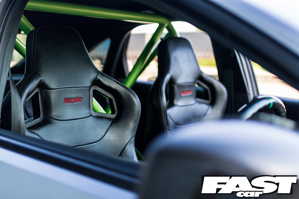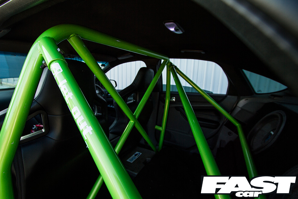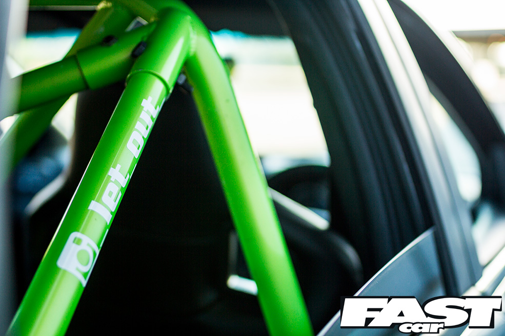 Out on track, Ant soon realised he needed another mod to help the body stand up to the engine’s hammer blows. ‘It used to crack my gauge pod at 24 psi; I went through four of them!’ He settled on a four-point, bolt-in half roll cage, the most extensive in-car strengthening allowed by Aussie road rules. ‘A friend of a friend had it in his Focus RS,’ Ant explains, ‘then my friend got it. It was already Ultimate Green and I badgered him for months before he sold it to me.’