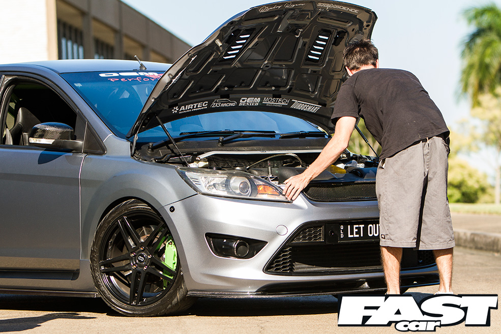 Upon collection, Ant’s new car was entirely stock and he intended to keep it that way. His resolve lasted a whole month before an XR5-owning friend provided the tuning trigger. He’d bought his 2008 Focus on exactly the same day of Ant and swiftly called him with news of an irresistible deal: Dreamscience had a sale on. ‘It was a tune up and secondary dongle package for $1000 and we were going to split the cost in half,’ Ant remembers. ‘I couldn’t afford it at the time but he offered to let me pay him back in instalments, so that’s how it all got started!’