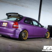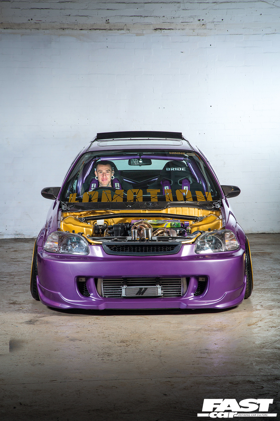 In 2013 the engine bay became gold and the stance game was turned up a notch with deep-dish OZ rims. At that point Shaun could have let things be and even now two years later the Civic would still look fresh. But, always looking forward for maximum impact, he took the Civic off the road again for what turned out to be the biggest challenge yet.