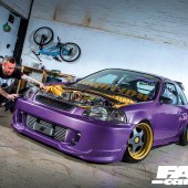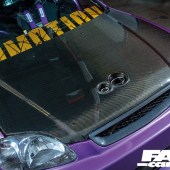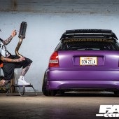 First time we dropped by it had the 2.2 Prelude VTEC conversion and it was as Shaun describes ‘a grimy street look’, painted white with graffiti on the roof. Next it was stripped completely and painted in a custom colour given the name ‘Donatello Ninja Purple’. This, along with some smoothing in the engine bay and an interior change, gave it a cleaner theme.