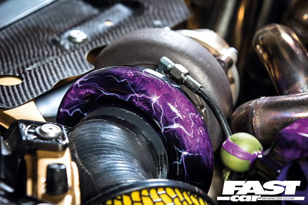 As usual, no corners were cut and the resultant engine spec is mindblowing. From the head work and uprated internals to the big custom Garret turbo, bespoke pipework and manifolds – it’s all nothing but the best.
