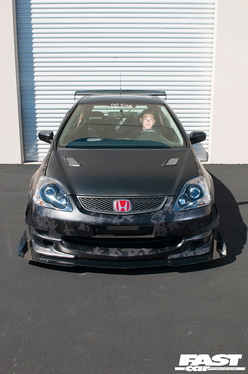 Now, the uneducated out there will argue that the Americans don’t do corners and that a supreme handling car like the Civic is something of a redundant entity. Oh how wrong they are! If you look closely, pound-for-pound, you won’t find more big-power, track-ready Hondas anywhere else on the planet – amazing considering these guys didn’t even get the Type-R in the first place! In fact, nowadays the relatively small-capacity Civic Si’s have become as much a part of the diverse American car culture as the HEMI-powered muscle, or big block Chevy pick-ups from Detroit. The proof is right here staring you in the face too, and it comes courtesy of Orange County local, Phillip Nguyen.